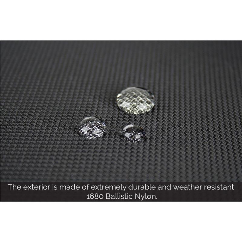 Weather-resistant exterior: Made of extremely durable 1680 ballistic nylon and reinforced with zig-zag stitching.